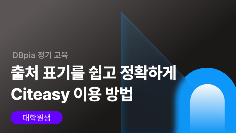 논문 작성에 있어 출처와 참고문헌 표기는 결코 소홀히 해서는 안 되는 중요한 요소입니다. 출처와 참고문헌 표기를 제대로 하지 않으면 표절 문제로 이어질 수 있는 치명적인 상황이 발생할 수도 있습니다. 이처럼 매우 중요한 과정임에도 불구하고, 방대하고 세부적인 인용 규칙 때문에 참고문헌 정리를 앞두고 막막함을 느끼는 분들이 많습니다. 이번 교육에서는 쉽고 정확한 출처 및 참고문헌 표기를 돕는 서지관리도구 싸이티지(Citeasy)를 활용하여 이러한 고민을 해결하는 방법을 함께 알아봅니다.